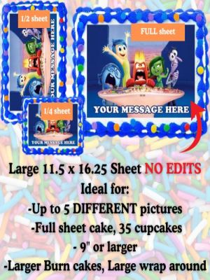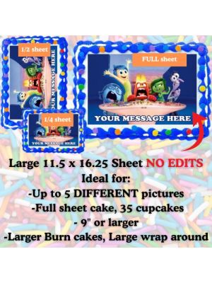 Edits = Any change we make to the picture or design in separate software (not Icing Images software). This includes more than 5 DIFFERENT photos on a sheet. Text added is included in 'no edit' sheet. Edible imaging Edits Policy effective 10-31-25: Any edits besides adding text will incur the edit fee. Edits include but are not limited to any one image sheet that contains more than one size picture (example of a jumbo sheet that contains: one 6” heart with cupcakes or wrap around). No fee edit = one size photo only, no mixing sizes. To avoid edit fees: please send your sheet design ready to print (designed and formatted).