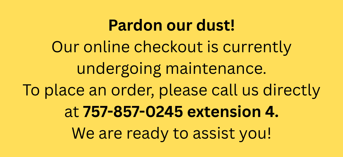 ATTENTION: There are issues affecting checkout that may impact the ability to place orders. If you are unable to checkout, please call your order in at 757-857-0245 ext 4 - we will be ready to assist you!